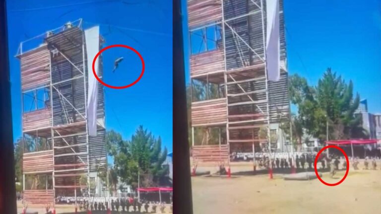 En la ocasión los dos cadetes realizaban una demostración de eficiencia con salto de una altura de más de 20 metros denominado “salto de la muerte”, característico en estas ocasiones dentro la institución militar.