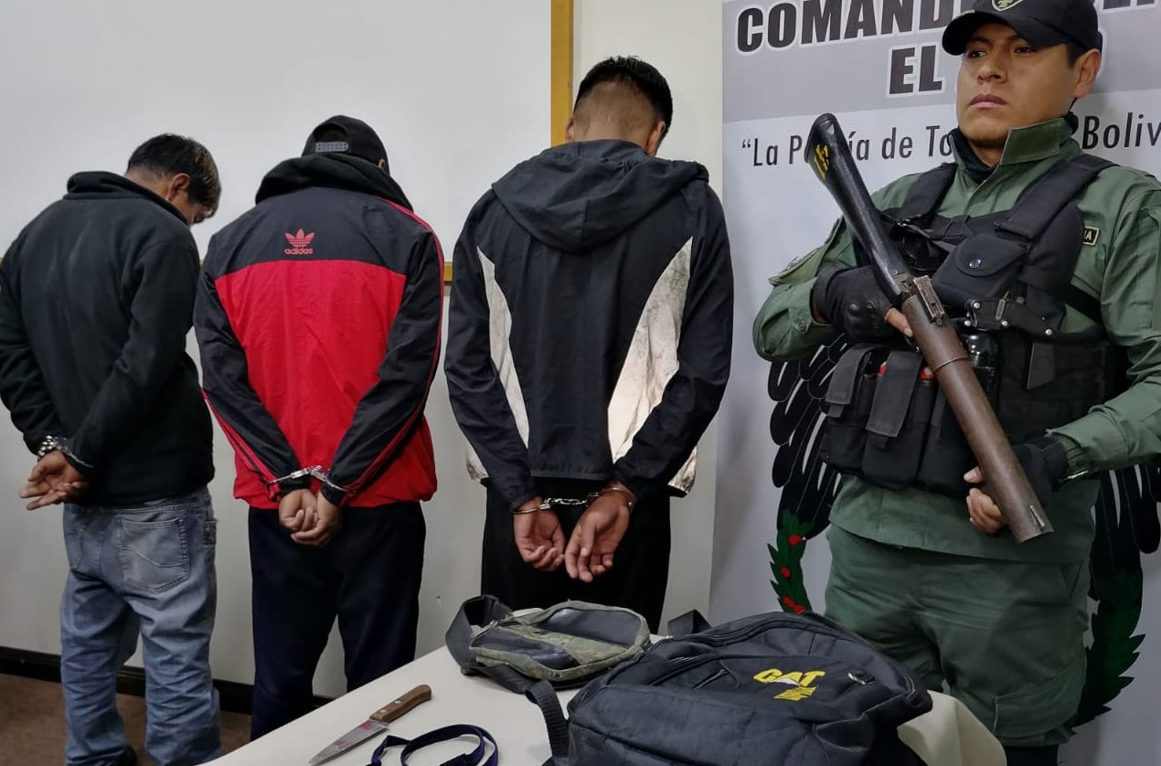En el momento de la aprehensión de los antisociales, intentaron darle a la fuga, pero la oportuna intervención de los efectivos del orden se logró aprehender a los delincuentes que operaban en inmediaciones del Multifuncional de la Ceja de El Alto, especialistas en el robo de celulares y otros objetos de valor.